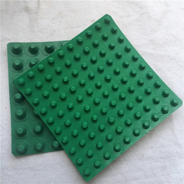 圓錐突臺的頂面膠接一層過濾土工布,以阻止泥土微粒通過,從而避免排水通道阻塞使孔道排水順暢。 傳統(tǒng)的排水方式使用磚石瓦塊作為導(dǎo)濾層、使用較多的鵝卵石或碎石作為濾水層、將水排到指定地點(diǎn)。而用排水板取代鵝卵石濾水層來排水則省時(shí)、省力又節(jié)能、節(jié)省投資、還能降低建筑物的荷載。