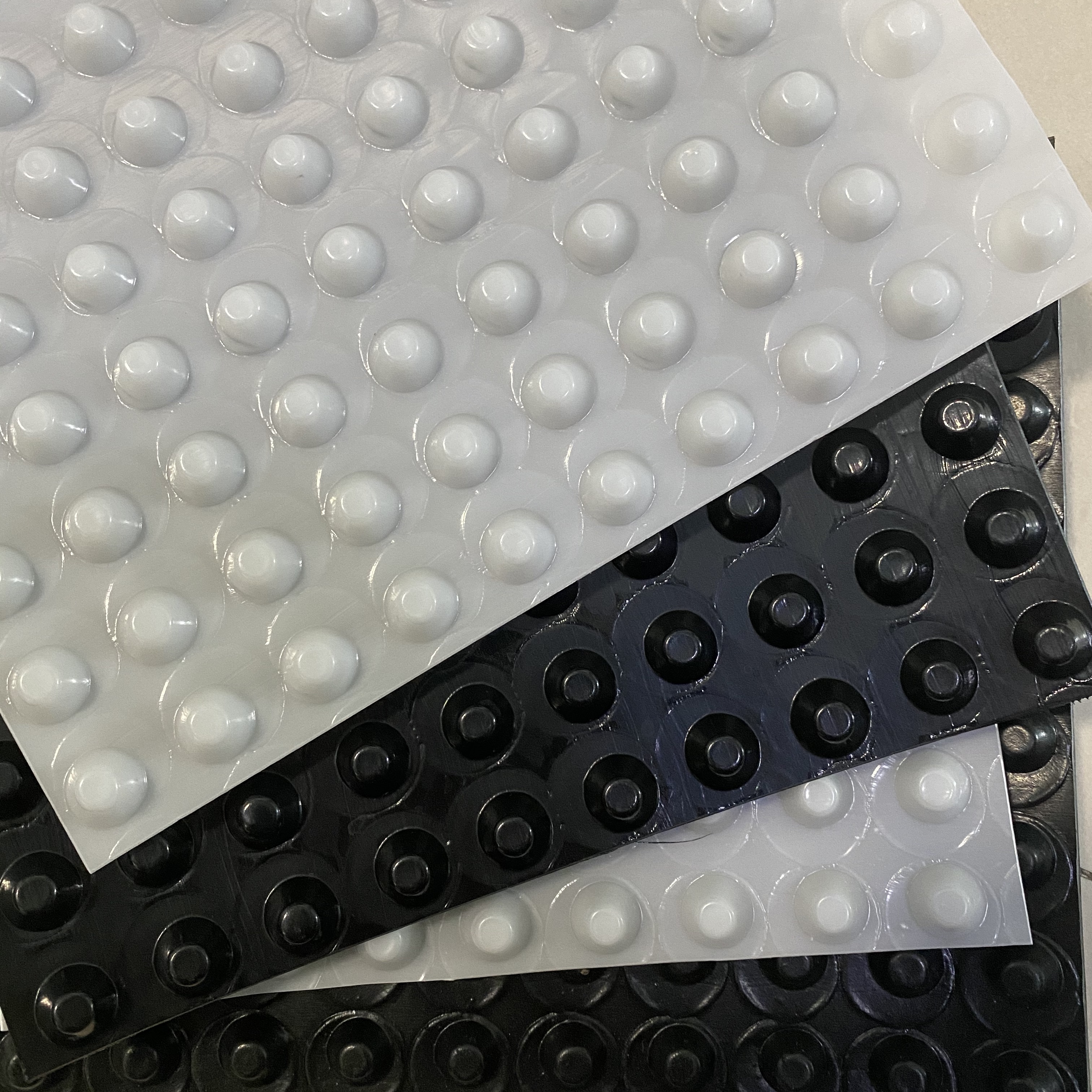 排水板 是由聚苯乙烯(HIPS)或者是聚乙烯(HDPE)為原料塑膠底板經(jīng)過沖壓制成圓錐突臺(tái)或者加勁肋的凸點(diǎn)(或中空?qǐng)A柱形多孔)而成,經(jīng)過不斷的創(chuàng)新研發(fā)原料得到巨大提升和變更,現(xiàn)由聚氯乙烯(PVC)為原料壓制而成,抗壓強(qiáng)度和整體平整度得到大幅度的提升,幅寬有1~3米,長度有4~10米或者以上。