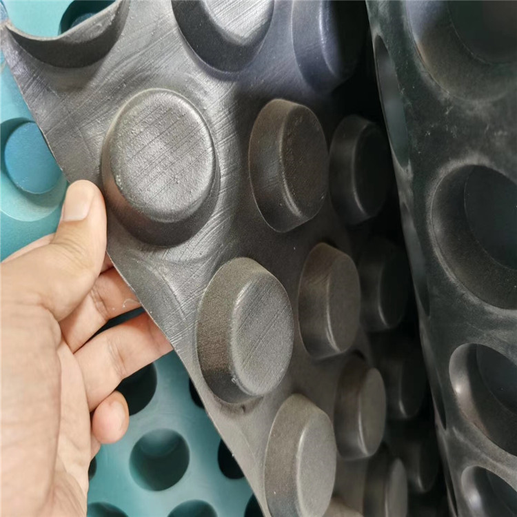圓錐突臺(tái)的頂面膠接一層過濾土工布,以阻止泥土微粒通過,從而避免排水通道阻塞使孔道排水順暢。 傳統(tǒng)的排水方式使用磚石瓦塊作為導(dǎo)濾層、使用較多的鵝卵石或碎石作為濾水層、將水排到指定地點(diǎn)。而用排水板取代鵝卵石濾水層來排水則省時(shí)、省力又節(jié)能、節(jié)省投資、還能降低建筑物的荷載。